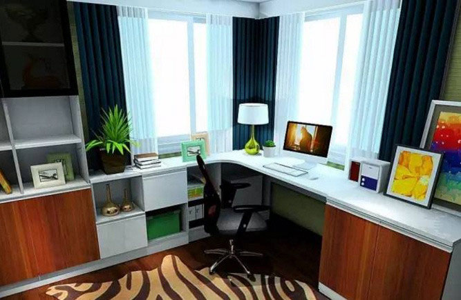 书桌组合采用转角书桌组合设计,将左右两侧的墙壁充分利用起来,视觉上浑然一体,又避免了墙壁死角的空间浪费。电视柜组合巧妙地...